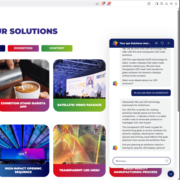 Exhibition stand - Product and medical device information hub, use a chatbot to serve the information to the user.