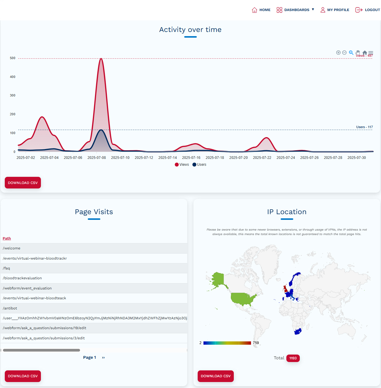 On-demand data - Post-event metrics including return visits, new arrivals, and their website interactions.