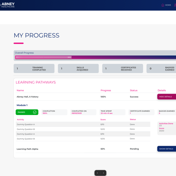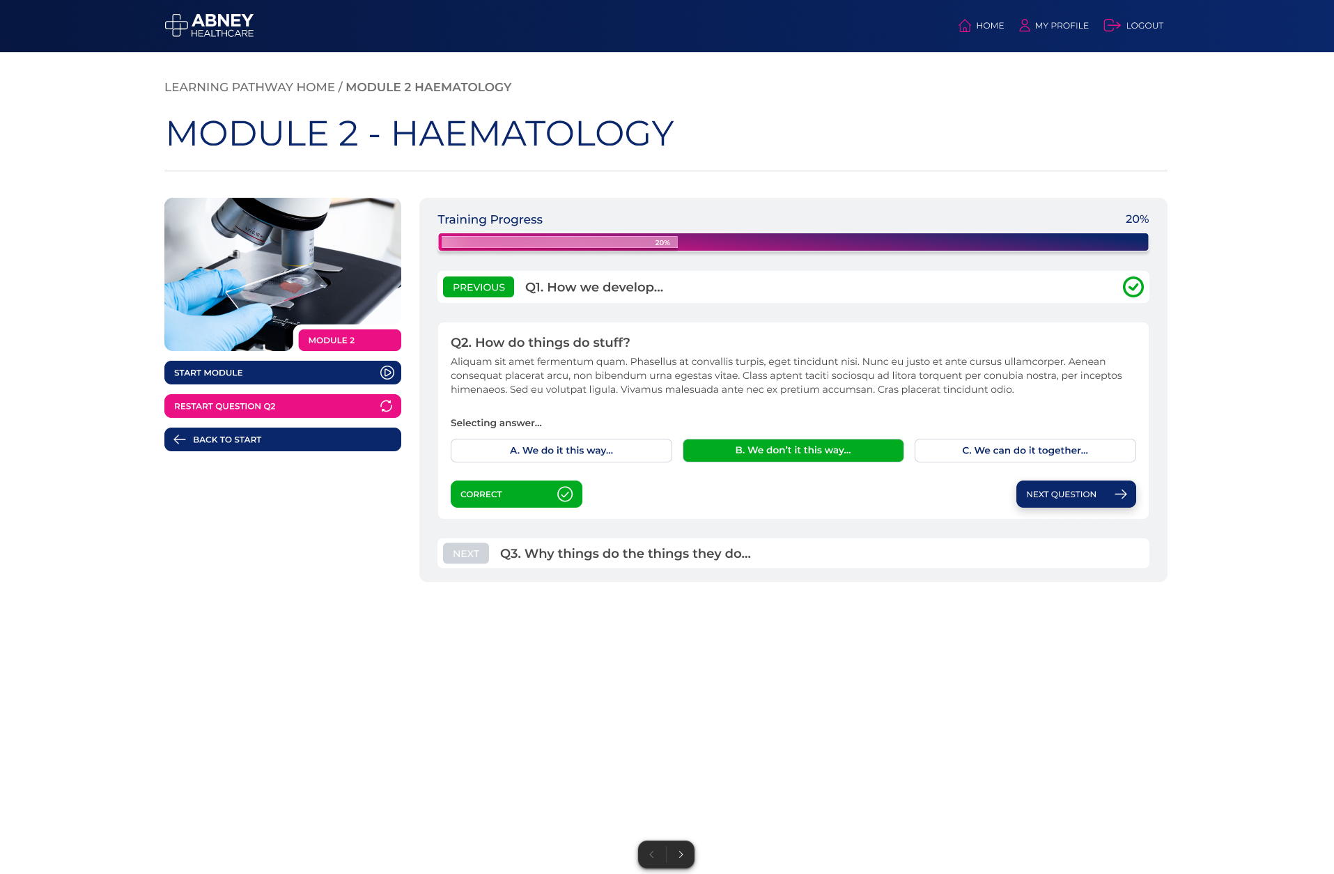 Solution – A flexible LMS with a wealth of functionality, specialised in supporting HCP learning and education.