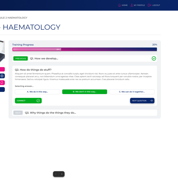 We can seamlessly build a Learning Management System (LMS) into any web-based solutions, allowing users to access tailored made courses, resources and assessments. Creating a custom, fully integrated learning experience, all in one platform.