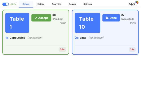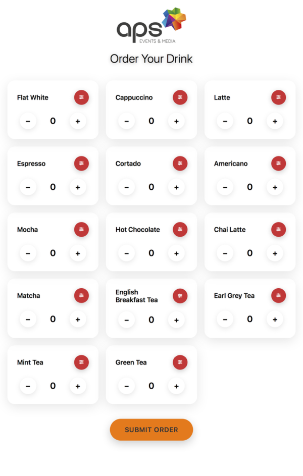 Description: Coffee ordering system for use on exhibition stands at congress.